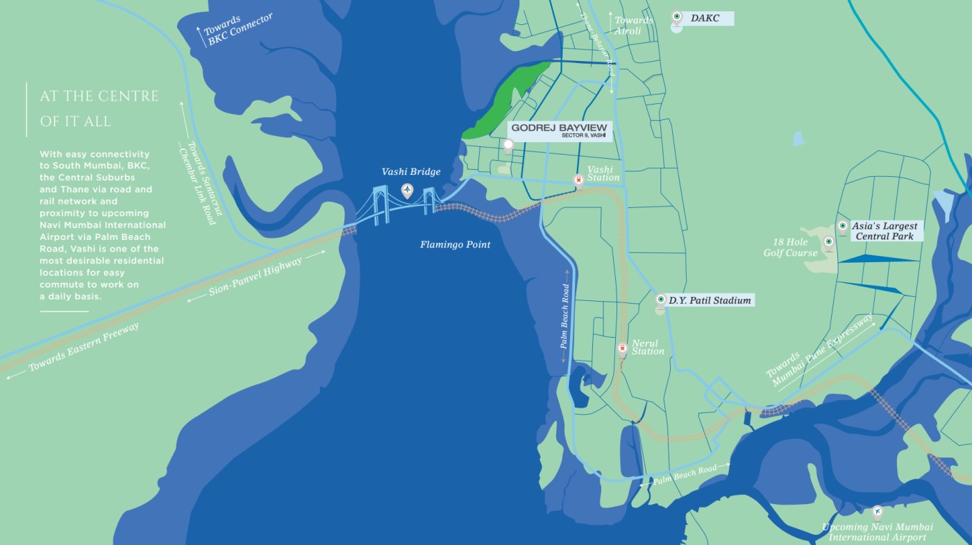 Vashi, known for its tranquil creek, elegant flamingos, and relentless drive for excellence, stands out as the crown jewel of Navi Mumbai. Boasting over fifty educational institutions, world-class healthcare centers, and 45%* green spaces, it ensures an exceptional quality of life. The Bayview Navi Mumbai project embodies this spirit, offering an unmatched blend of luxury, convenience, and sustainability in a thriving self-sufficient hub. Read more